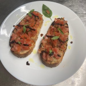 Bruschetta is an Italian appetizer (antipasto) consisting of grilled bread topped with garlic, olive oil, and salt. Most commonly it is served with fresh tomatoes as a toppings
